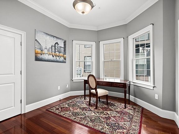 Sunny and spacious first floor home with finished lower level.1.1 mile to ashmont station This two bedroom two bath offering an open floor plan with cherry hardwood floors. First floor offers updated kitchen with stainless steel appliances,bedroom,full bath,home office and laundry. Lower level offers polished concrete floors,open flex space which could be a home gym,office space,living area as well as the master bedroom with ensuite bath. Outside of the unit offers exclusive use of patio area One off street parking space One year lease