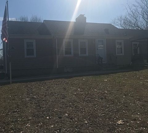 Super Ranch features 2 generous bedrooms. Bright and open kitchen leads to dining area. The family size living room offers a cozy, brick fireplace with a gas insert. An additional den/ office conveniently situated right off the master bedroom, leading out to great patio area. The home features hardwood flooring throughout, vinyl siding, and a one car garage. Even features solar panels to offset energy costs. Don't miss out. Call today!