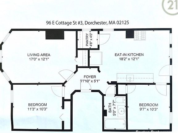 This is a 2 bedroom, 1.0 bathroom, apartment home. This home is located at 96 E Cottage St #1C, Dorchester, MA 02125.