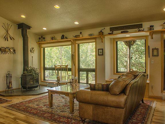 This beautiful custom home offers the best in mountain living. The large windows allow for the enjoyment of the colorful aspens and wildflowers that surround the home. Level acreage and walk to fishing lake close by.