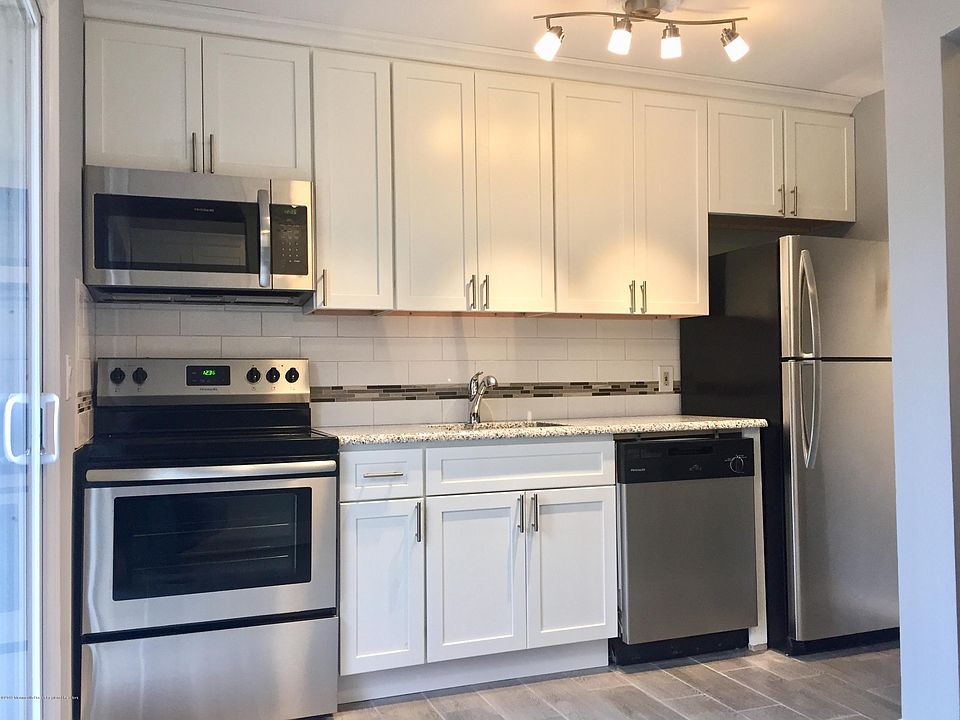 Completely updated upper level condo! New stainless appliances including a dishwasher and over the range microwave, kitchen cabinets, hardwood floors, bathroom with new vanity and tiled floor and bath surround. Rear balcony overlooks the woods. Convenient location in close proximity to the ferry, beaches and shopping. Navesink Cove is a pet-friendly development with plenty of parking and a swimming pool. Heat and hot water are included; tenants only pay for electricity and cable. Pets considered.