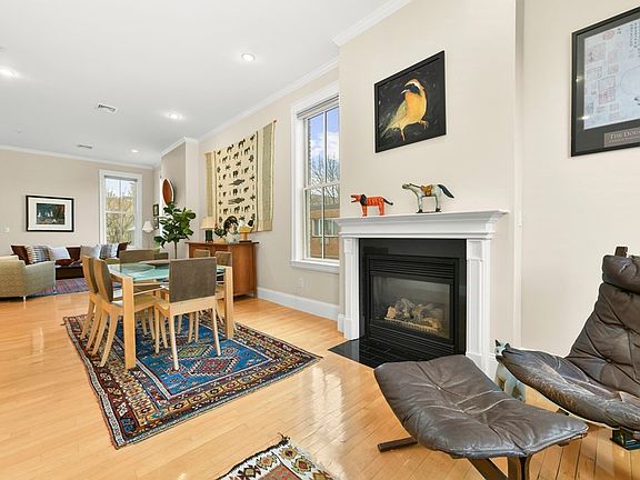 Sophisticated floor-through condominium with soaring 10 1/2 foot ceilings and incredible light from all directions. Nearly 2100 sq ft all on one level with oversized double-hung windows. 36’ living/dining room with gas fireplace, study alcove and storage closets. The spacious open floor plan also offers separation for working and resting. Large eat-in kitchen with wainscoting and sliders to a covered porch. Primary suite is its own wing separated from living area with 2 walk-in closets and large 4-piece en-suite bath with double vanity and soaking tub. 2nd and 3rd bedrooms plus full bath are tucked in the back of the unit with 2nd covered porch. Powder room off living/dining. Central AC throughout. In-unit laundry. Plenty of closets and storage. Off-street parking. Immediate access to Joan Lorentz Park, tennis courts, War Memorial Rec. Center & Pool, plus so much more. Within half a mile radius of Harvard Yard, museums, as well the best shops and restaurants Cambridge has to offer.