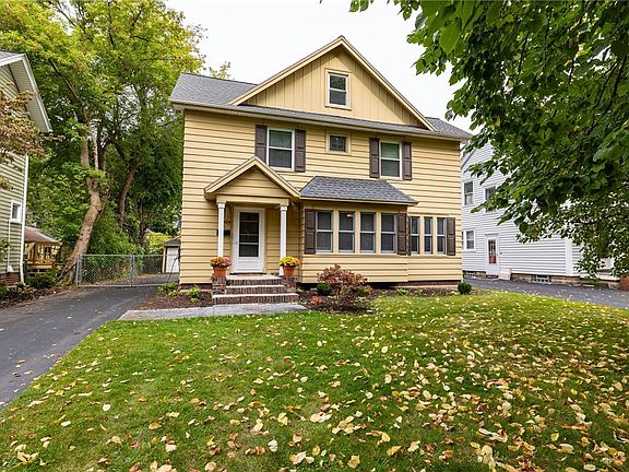 Welcome Home! Located within the highly desired Browncroft Neighborhood. Gorgeous curb appeal w/ perfectly manicured landscaping & 2 car garage! Walk through the door to find meticulously maintained hardwoods gleaming throughout the 1st floor. Large windows shining loads of natural light & custom blinds! The recently renovated kitchen is a chefs dream w/ ample quartz countertop, tons of storage, & stainless steel appliances! Sliding glass door to your brand new stamped concrete patio! Perfect for hosting a fire, or just relaxing during the warmer months! Plenty of green space for outdoor games, or for your animals to run around! The dining/kitchen combo flows fluently to the living room making this space great for entertaining! Small office & powder room tucked away, ideal for those who work from home! Upstairs you'll find 3 large bedrooms & a full bathroom. The attic has been tastefully renovated w/ cozy carpet, recessed lighting, & extra storage! This bonus room adds approximately 300 sqft bringing your overall square footage close to 1900! Talk about a lot of bang for your buck! Tesla/EV charger installed too! Delayed negotiations until 9/30 @2pm. Open House 9/28 11a-1230p.
