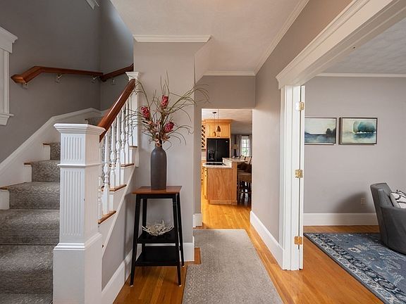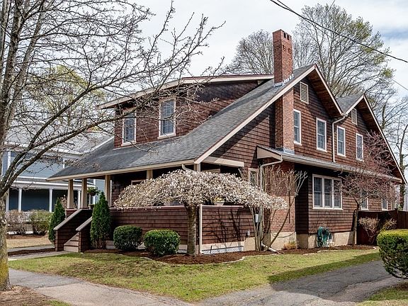 Meticulously maintained 4 bed, 3.5 bath Craftsman style home within historic district neighborhood steps from Newton Highlands village, Hyde playground, Cold Springs Park and Green Line MBTA. First time on market, this home has been expanded/updated over the years. Upon entering through covered mahogany front porch, you’ll be greeted by magnificent high ceilings, period millwork, gleaming hardwood floors, custom red birch kitchen cabinets and built-ins, and custom window coverings throughout. French doors lead from living room with gas fireplace and custom mantle to dining room with built-in china cabinet into open concept kitchen. Completing this floor is an oversized family room, office and mudroom area leading to another enclosed porch and patio. The 2nd level has 4 generous bedrooms, 2 full baths, laundry room w/custom cabinetry & linen closet. Spacious master suite offers 2 walk-in-closets en-suite bathroom w/soaking tub. Partially finished basement with bonus space and full bath