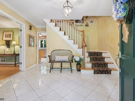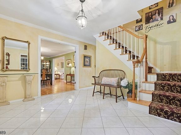 Timelessly elegant. Our 5 Bedroom/3 Full bath Center Hall Colonial is resting on .40 acres of beautifully landscaped property. Situated on a tree-lined cul-de-sac in the Timber Slope Section-one of Berkley Heights most sought after neighborhood. This home features a spacious foyer, hardwood floors, crown moulding, large windows that flood the home with natural light, and lots of hi-hats. The formal living with french doors and dining room with wood burning fireplace are poised for gracious entertaining. The family room with sliders to the deck, is ideal for everyday life. A chefs delight Eat-in-Kitchen has granite counters, tumbled marble backsplash, custom cabinets, new Stainless appliances, undercounter lighting, and lots of pantry space. The adjoining breakfast nook includes sliding doors to the newer oversized deck, perfect for al fresco dining & entertaining. The laundry closet is nicely tucked away & equipped w/a new washer/dryer. A full Bath and optional office/5th bedroom complete the 1st floor. Four ample bedrooms are nestled on the 2nd level. The primary suite provides a new full ensuite bath with 2 sinks and lots of closet space The updated main bath has a new vanity and 2 sinks. The lower level full finished basement is perfect for a Rec Room/Media Room/Playroom or optional office. Loads of storage space. Attached is an oversized 2 1/2 car garage. Convenient to shopping, recreation, top rated schools and NYC transportation-only minutes from your front door.