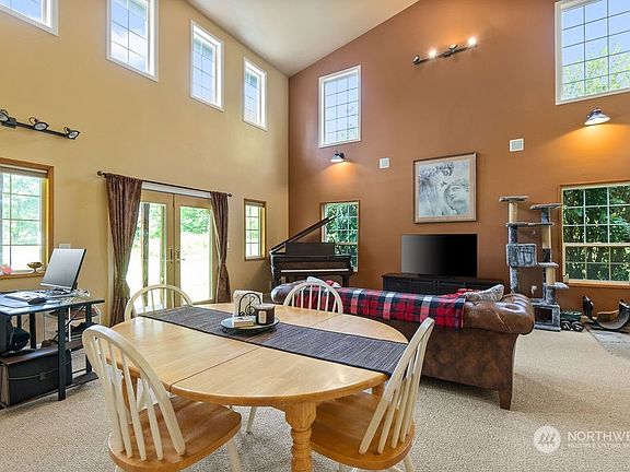 Fabulous home on private island! Once inside this home welcomes you with an open floor plan featuring 23' ceilings, a large kitchen with plenty of storage & Jenn-Air stove which opens to the living area w/ wood burning stove. The loft features an entertainment space or also doubles as a sleeping area. Home has plenty of room for guests. Outside you will find the entertainment size yard w/ fire pit. Close to Everett the island features a golf course, tennis court, covered picnic area & marina. Home comes partially furnished.
