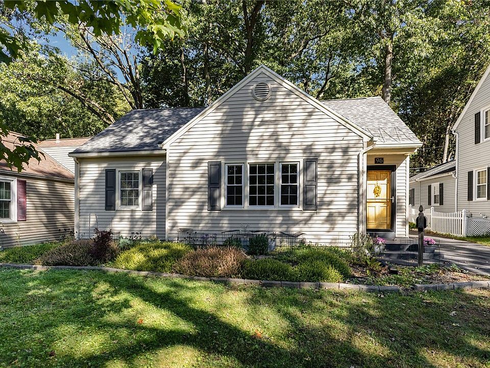 Expect to be impressed! This pristine cape-cod is nestled in a wooded neighborhood bordering Durand Eastman Park. Beautifully refinished hardwood floors, thermal replacement windows, remodeled kitchen and baths. Eat-in kitchen has quartz countertops, white shaker-style cabinetry, stainless appliances. Main floor has two bedrooms and a full bath with walk-in shower. Formal dining room has built-in corner cabinet. Finished second floor (35'x12') has second full bath, wall to wall carpet, wall of closets. Basement has recreation room (33'x13') and separate utility/laundry room. Gorgeous sunroom with cathedral ceiling has knotty pine Adirondak feel- overlooks back yard. Secluded backyard oasis has privacy fence. Located in the beautiful Sea Breeze area close to Lake Ontario and Irondequoit Bay. Delayed negotiations until Monday, October 6, 2025 at 11am.
