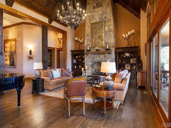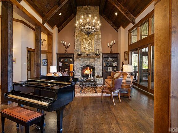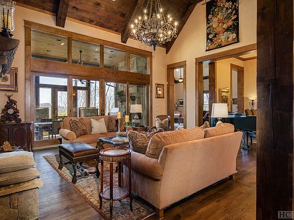 On five acres in the idyllic mountaintop community of Zachary's Gap, this stunning estate welcomes you with rich wood and stone architectural details. The foyer opens to the living room with a massive stone fireplace, soaring ceilings with strong timber beams and room for a grand piano, and then flows into the elegant dining room with wet bar - an inviting atmosphere for small gatherings or larger festivities. The impressive gourmet kitchen is designed for every level of culinary skill, from the casual cook to the experienced chef. Savor the exceptional mountain views and sublime Plateau weather on the screened porch with a built-in BBQ and fireplace, or relax in the family room for an evening of cocktails and conversation. The main level also features a large master suite, private study and two additional guest suites. Upstairs in the game room, play billiards or cheer on your favorite football team for a fun afternoon with family and friends. Pet lovers will welcome the raised shower/grooming station in the laundry room. This beautifully finished custom home offers an array of living spaces for privacy, comfort and versatility. Close to the dining, shopping and country clubs of Cashiers and Sapphire, it is a must see for those seeking a refined and spacious luxury mountain estate.