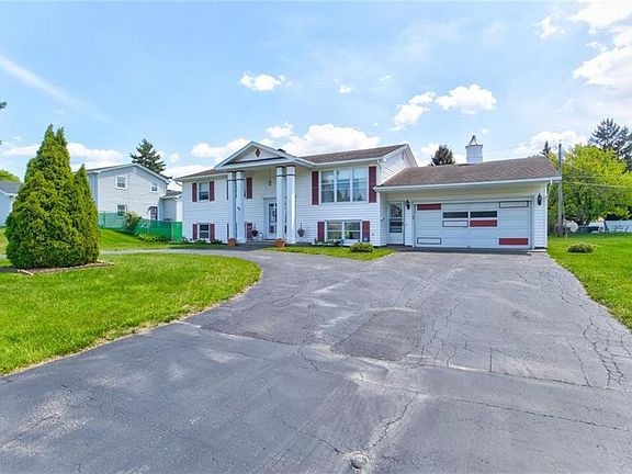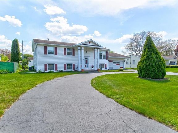 Welcome to 96 Greenlawn Dr. situated on a beautiful circular drive. Pride of Ownership really shows starting from the majestic exterior columns and the beautifully manicured landscaping. You will feel right at home as soon as you step foot in to this lovely home. Entertaining is fun and easy with 2 kitchens and 2 dining rooms! The upper level has tons of space with 3 bedrooms and one full bath. A quaint kitchen with a formal dining room and open to the big family room. Beautiful intricate ceiling beams are the highlight of the dining room. Stairway entry/access from the upper kitchen to the garage. The lower level is perfect for the in-laws/teen suite with true entryway/access from the garage to the lower level. The lower level dining room can simply be converted to a big bedroom. The lower level has a second larger eat in kitchen plus a second full bath. The rich gorgeous wood beams graces the ceilings of the large family room. Attached 2-car garage has two entry ways in to the upper and lower level of the home. Newly painted in today's neutral colors. This home has been loved and meticulously cared for now ready for the next lucky owners. THIS HOME IS MOVE IN READY!
