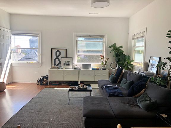 Top floor of a duplex on a quiet cul-de-sac street. Clean and sunny. Each bedroom has a large closet and a light-filled office. Friendly street that scores high in walkability to all that uptown Oakland has to offer. Newer kitchen with stainless steel appliances. Second story deck overlooking garden. Dishwasher. Washer/Dryer. Double pane windows. Central heat. Off Street (stacked) parking. LGBTQI friendly. Location: you do not need a car to live here, yet if you do, there's a driveway. Whole Foods (5 minute walk) BART (10-12 minute walk), Lake Merritt (5 minute walk), 880, 580 & 24 (2 minute drive), Alta Bates, Uptown Tenant pays gas and electric. Extra deposit for dogs.
