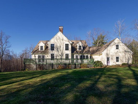 Welcome to your home sweet home! Custom built Cape on a private 10+ acres located in desirable Chester NH! Spacious eat in kitchen with center island perfect for entertaining complete with NEW granite counter tops, fully applianced, built-in farmhouse table with bench seating. Natural light, cozy woodstove and exposed beams in the living room, plus a family room & 3/4 bath. 1st floor primary bedroom complete with walk in closet, laundry area, soaking tub and vanity. Upstairs you will find newly installed carpet with 2 large bedrooms and a full bath. The basement offers tons of storage and lots of potential with the partially finished part that walks out to the natural fire pit. Lush landscape with fruit trees and grape vines. Near atv/walking trails. Within minutes to Pinkerton Academy and shopping this is a great commuter location. All you have to do is move in!