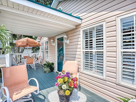 Live in a bit of history! This lovely beach cottage is one of the first homes developed in North Myrtle Beach's Ocean Drive neighborhood! You'll adore sitting on the front porch and taking in the scenery right off Main Street. The upper level has three bedrooms and two baths along with kitchen, dining and living. What a great layout for entertaining friends and family! As you enter upstairs off the front porch you will be in a lovely sunroom. You will appreciate the Plantation Shutters that add to the warm feel of this home. Move on into the living area to find lovely 'original' wood floors that continue into the dining room! A niche in the wall between rooms is ideal for displaying your artwork. The kitchen is located at the back of the house and has plenty of cupboards and prep space. The laundry area is located off the kitchen and features a full-size washer/dryer as well as plenty of storage space. The 'primary bedroom' with a walk-in closet is in the center of the home. It shares a bathroom with the back bedroom. At front of the home there is a bedroom and hall bath. Head downstairs and enter the front gate to get to the 2nd private residence. In the first level you will find two-bedrooms, one-bathroom with a full kitchen, dining area, and living room. Extra space for family and friends, or perhaps rentals. The home is being sold furnished upstairs and upstairs is well decorated. The custom made bedspreads and drapes are beautiful and convey with the house. Along with a slew of other things, including the porch furniture which is currently in the living area of the lower level. There are a few decorations and items that do not stay (ask your agent for a list). With a somewhat private backyard, the lot backs up to North Myrtle Beach McLean Park Property. You will find this is a great place to have a golf cart to get around. The beach is only a few short blocks away, and there are restaurants, shops, hot dog stand, ice cream, pizza, banks, grocery, and dance clubs where you can Shag - the state dance of SC. If you want to see a show or get to other entertainment and shopping, you are only a short drive away. Welcome to the beach; come and relax and stay for a while.