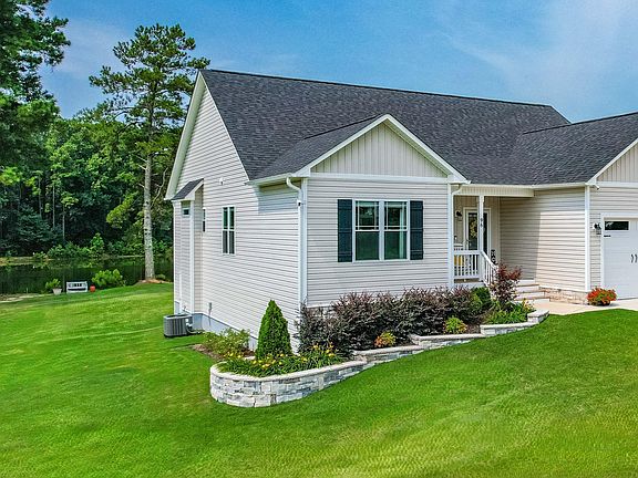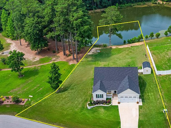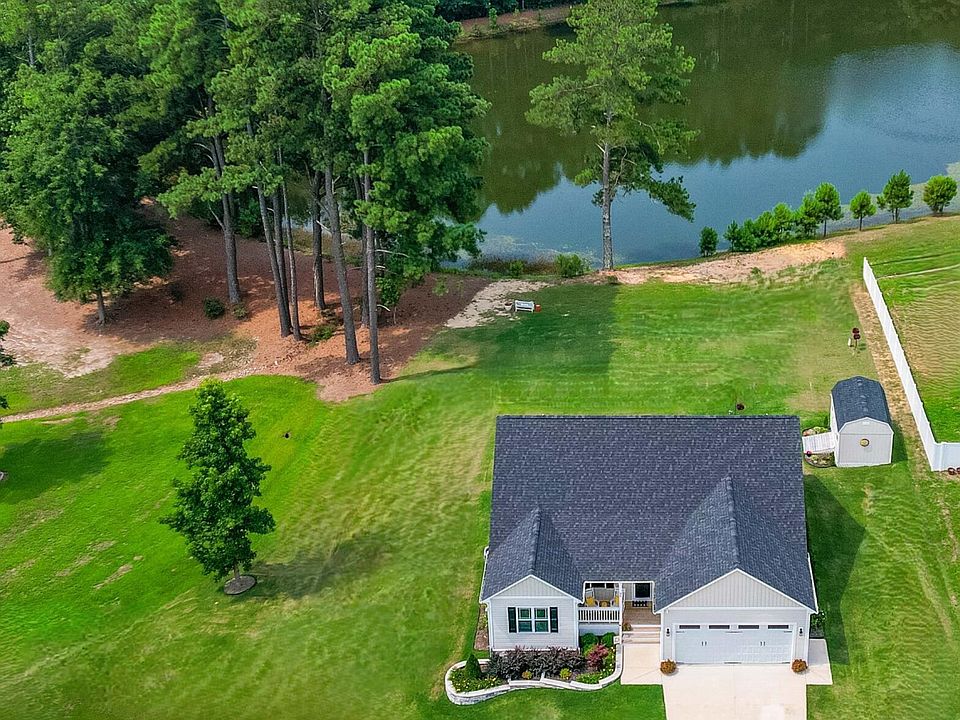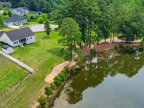 A rare opportunity to go FISHING or KAYAK from your own backyard or simply relax on your SCREENED PORCH and enjoy a beautiful WATER VIEW. Discover serene living in this stunning 2-YEAR-OLD RANCH home, perfectly situated on NEARLY AN ACRE of land that EXTENDS INTO THE WATER! The beautifully landscaped yard is highlighted by a cultured stone retaining wall, adding beauty and functionality to the outdoor space. As you approach the home, you'll be welcomed by a classic rocking chair front porch, leading into a spacious entry foyer that sets the tone for the rest of the house. A modern kitchen is a chef's dream, featuring granite countertops, stainless steel appliances, under cabinet lighting, and a convenient island with a single bowl sink for meal prep or casual dining. The adjacent breakfast nook provides a cozy spot to enjoy your morning coffee while overlooking your private backyard and pond. A spacious living room is perfect for gatherings, complete with a gas log fireplace and vaulted ceiling that adds to the sense of openness and comfort. Large primary suite with a walk-in closet, double vanity, soaking tub, and a separate shower. Additional features include a 10x16 LOFTED SHED, providing ample storage space for outdoor equipment or hobbies. Conveniently located in Langdon Farms off Hwy 210 just minutes from I-40. Whether you're an outdoor enthusiast or someone who appreciates the beauty of nature from the comfort of home, this property is a rare find.