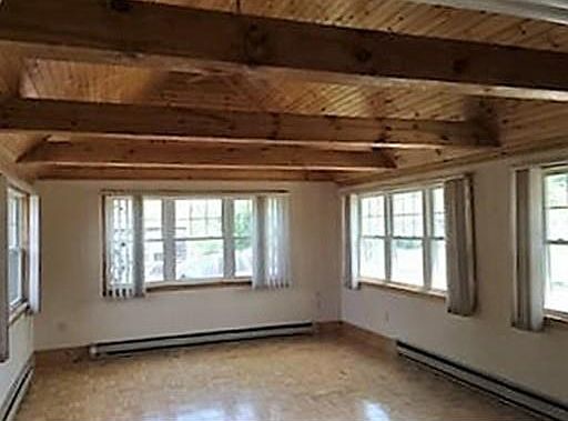 Adorable home available for year round rental. This property is short walk to the areas best restaurants, beach, marina and the newly rebuilt Peter Igo Park with Kayak launch, tennis and basketball courts. There is a larger living room with cathedral ceiling and wood stove (former tenant used as the master bedroom), another living area, small kitchen, full bath with laundry and 3 small bedrooms (twins would be likely in two of them). This home has newly refinished hardwood floors and a brand new heating system complete with central air. There is a 10x20 attached deck with sliders from the family room perfect for summer entertaining at the beach, a managable yard with firepit and driveway for parking. A great opportunity to be in Marshfield with all it has to offer!