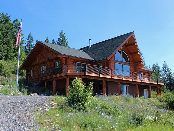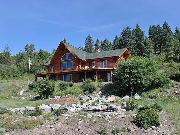 4148 sq ft log home on 72 private acres adjoining state land and near thousands of acres of National Forest. Breathtaking views with no neighbor in sight. 4 bedroom, 3 bath beautifully designed with Western Larch logs. Good mix of Hawaiian Ohia hardwood, slate, tile and carpet. Walkout basement fully finished. Recently updated with stainless appliances, granite counter tops, composite decking and more. Outside is a spring fed pond, natural landscaping, pasture, 32x40 shop, 1440 sq ft barn, corral system, small year round stream, fenced gardens, green house and 2 RV hookups. see video at https://www.youtube.com/watch?v=JSMqgve3wJc