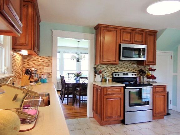 What a beautiful example of a modern Colonial! Directly abutting Braga Park, on the breezy waterfront of Easton's Pond, we find this beautiful home, boasting all the charms of a Colonial house but with none of the drawbacks (low ceilings, narrow doorways, small closets). The living room is massive, large enough for any sectional, and features a large brick-mantle fireplace. The formal dining room leads effortlessly into the nicely updated kitchen and on to the three season room. There are sliders to the back porch, which overlooks a private fenced-in yard with lovely landscaping. Three bedrooms with an additional room for an office (or nursery) give plenty of room to stretch out and enjoy your home. Come see how grand life on the water can be! Call Sean Lawrence with Teri Degnan Real Estate at 401-924-3327 Available through June 2019