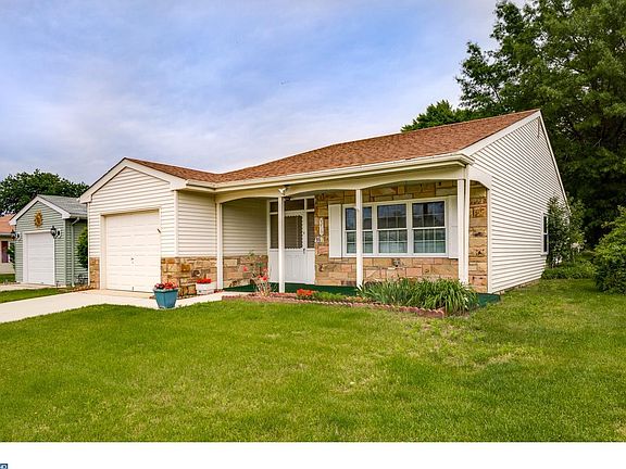 Can't pass this one up! Not only is this Haverford model the largest, it also offers NEW bathrooms, NEW carpet, freshly painted, power washed and professionally cleaned. On top of that it has a Sunroom off the Eat-in-Kitchen to sit and enjoy the park-like view and a covered front porch. You enter thru a foyer with nice sized guest closet into a carpeted formal living room large enough for all that over-sized furniture and a carpeted dining room sized to fit a table for those family dinners you love. Down the hall from the living area are the 2 large size bedrooms and a second full bath both completely renovated with tub,vanity, flooring and lighting. Master Bedroom offers walk-in closet and en-suite that has been fully refreshed with NEW tiled shower stall, vanity flooring and lighting. Guest room even offers double closets! Ceiling fans throughout. Eat-in Kitchen offer breakfast nook and pantry. Extra storage closet off the sunroom. Community offers multiple clubhouses, 2 pools, tennis courts, 2 libraries, fitness center, driving range and putting green, bus service, gated commutes - 24/7 Security and lots of activities. Nothing for you to do but move in - schedule to see this beauty today before it's gone.
