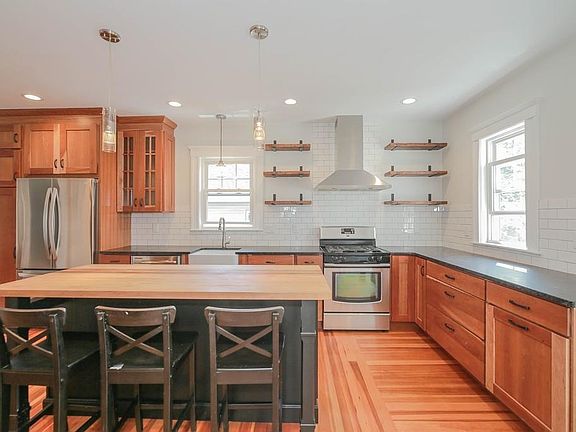 - Kit Dscrp: Flooring - Hardwood, Countertops - Stone/Granite/Solid, Dining Area, Stainless Steel Appliances, Kitchen Island, Open Floor Plan, Balcony / Deck, Remodeled