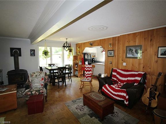 Rare opportunity to live within walking distance to the longest ski run in Ontario with a 640 and 730 feet of excellent skiing known as Mount Antoine. This 2 bedroom 2 storey home could be used as a short term rental for either summer enjoyment or the winter ski months. This home is nestled between the Ottawa and Mattawa Rivers and 7 kilometres from the town of Mattawa which also has a golf course. There is almost an acre of property that also has a detached garage and 2 driveways. The rec room is currently being used as a third bedroom. The main floor is an open concept kitchen, livingroom and diningroom. There are patio doors to a deck looking towards the ski hill.