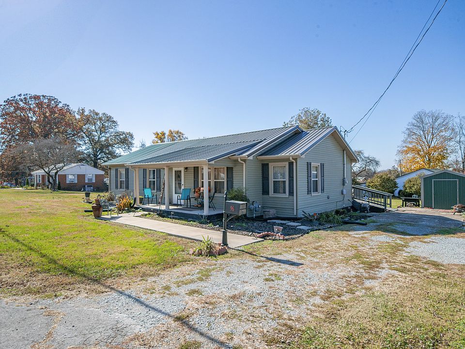 Welcome home to 96 Liberty Road — a beautifully updated 3-bedroom, 2-bath home situated on a spacious corner lot just minutes from downtown Winchester. 7 minutes from Twin Creeks Marina on Tim's Ford Lake. Completely renovated in 2018, this property offers modern comfort with timeless charm. Inside, you’ll find an inviting open layout with laminate flooring throughout and custom lighting that adds warmth and character. The kitchen features white cabinetry, stainless steel appliances, and a large island perfect for gathering or meal prep. The oversized utility room provides ample storage and functionality. The primary suite includes a full bath with tub/shower combo, tile flooring, and a generous walk-in closet. Enjoy mornings on the covered front porch or unwind on the large back deck overlooking the yard. A storage building adds convenience for tools or hobbies. With a metal roof, natural gas fireplace, and true move-in-ready condition, this home blends style, comfort, and practicality in a highly desirable location.