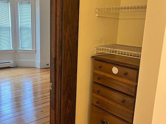First floor sunny one bed located in multi family home. Hardwood, eat in kitchen, high ceilings, coin op laundry in basement. 1 car off street parking tenant at will, good credit and rental history a must. Close to Horn Pond, on bus line, 93/128. No pets no smoking first, last 1/2 fee 12 month lease, good credit and income required