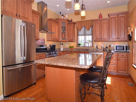 No detail has been overlooked in this beauty of a home! Walk in to this custom cape and picture living in the beautiful living room with gleaming hardwoods, fireplace, high ceilings, large windows and recessed lighting. The eat-in-kitchen is stunning with granite countertops, stainless steel appliances, gas stove, French door refrigerator, contemporary lighting, and center island with seating. The dining area is perfect for entertaining or enjoying family dinners. Also featuring beautiful bathrooms, master suite, laundry on first, central air, office, gas heat, 2 car garage and hardwoods throughout. Property is on a corner lot and beautifully landscaped from the front curb appeal to the back yard with fire pit area. Located on dead end street. A true gem. Welcome Home! Taxes reflect homestead.