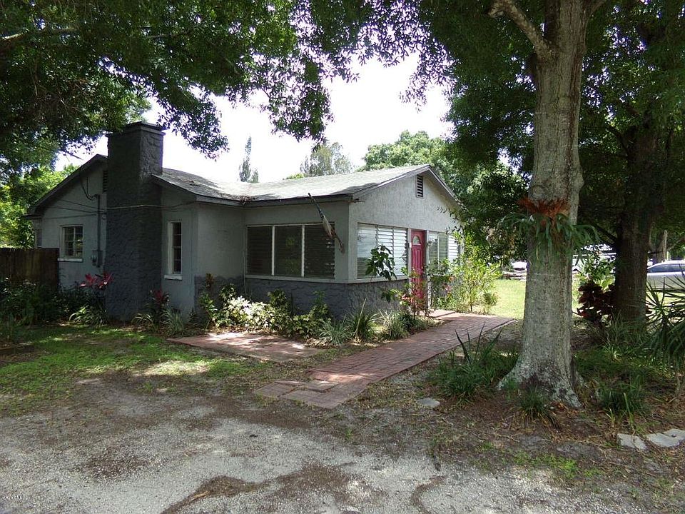 Great potential !! CBS-built cottage features 2 bedrooms, 1 full bathroom, an enclosed porch/Florida room area, family room, and utility room. Spacious kitchen with plenty of natural light opens to the family room which boasts a wood-burning fireplace and built-in shelving. Private fenced-in back yard has wood decking with towering trees providing shade in the hot summer months. With some TLC this property could be turned into a quaint little home. Convenient to restaurants, shopping, schools, and downtown Melbourne. Located between I-95 and US-1 for easier commuting. --- Bank owned !! Sold AS-IS, where-is !!