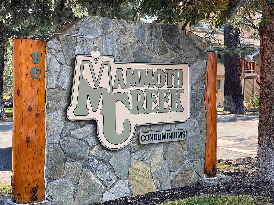Mammoth Creek Condominiums is perfectly situated in front of Mammoth Creek with views of the Sherwin Mountains, Mammoth Mountain, Mammoth Rock, Snowcreek driving range and vast open land of nature. Imagine yourself relaxing in this spacious 2 level Mammoth Creek 2 Bedroom with a Loft and 2 full bathrooms. Curl up in the living room next to the dramatic ledger rock wood burning fireplace with vaulted ceilings and an open floor plan. A well situated kitchen with engineered simulated wood flooring throughout the main level great room. Primary bedroom is located on the Main level and the 2nd bedroom is located on the upper level with a full bathroom. The washer and dryer are included and located on the 2nd level. Mammoth Creek Association has a tennis court, pool, 2 spa's, sauna, bike racks and is a beautifully landscaped and a well maintained complex. Walk with your fishing pole to the creek, the park and soon to be ice-skating rink. Walk to the shuttle stop and adjacent to the Town bike path. Close to Snowcreek golf course, restaurants and shopping. A perfect location for all!