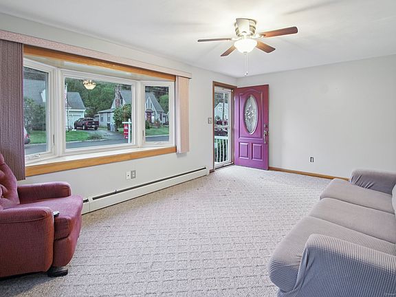 Welcome to 96 Mercier Avenue, a pristine ranch that blends classic charm with thoughtful updates and modern convenience. From the moment you arrive, the curb appeal shines with newer siding, a fresh roof, and updated windows, ensuring both style and peace of mind. Inside, the home offers a warm and inviting layout, starting with a bright living room and dining room filled with natural light. The dining room features gleaming hardwood, while the living room and bedrooms are carpeted-though beneath it all lies beautiful original hardwood just waiting to be revealed. The remodeled main bath showcases stylish new tile and a tub surround, while the eat-in kitchen is a perfect gathering spot with its breakfast bar, newer stainless steel appliances, and an easy flow out to the covered back porch with a low-maintenance Trex deck. Downstairs, the fully finished 800 SQFT basement expands the living space with a cozy family room, brand new carpeting, a fresh drop ceiling, laundry area, and even a cedar storage closet. The detached two-car garage is a true standout, complete with two separate workshops, perfect for hobbies, projects, or extra storage. Practical upgrades like oil heat, central air, central vac, a walk-up attic with new stairs, and an irrigation system for the front and back yard add everyday ease. Whether you are hosting friends on the porch, relaxing in the finished basement, or tinkering in the workshops, this home offers comfort, character, and quality at every turn! Hardwood floors underneath the carpeting in the upstairs bedrooms and living room