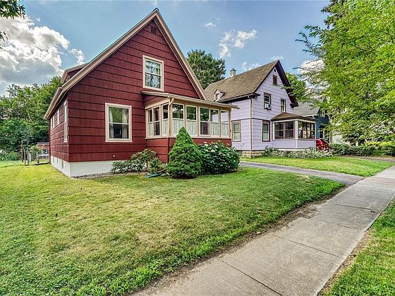What a Doll House this is!! Come sit and enjoy the enclosed porch, then step into the in home office with solid oak built-ins! Formal living and dining rooms with double leaded glass windows. HUGE walk-in closet, and walk-in butler's pantry! Newer kitchen, countertops and flooring! All appliances remain! Charming enclosed back porch too! Two large bedrooms with really good closet space, see videos! Full bath is large too and has linen closet inside! Hardwood floors, first and second floors except kitchen and bath. Full basement with NEW water line to street! Furnace, hot water tank and tear off ROOF all 2017. Central A/C unknown age. SHED is 13X11, pour a floor and call it a garage!!! Shed and large back building were originally used for chickens, last owner used for homing pigeons with babies in the shed. You have to see this incredible back yard! All offers due Thursday, 7/23 by 7pm.