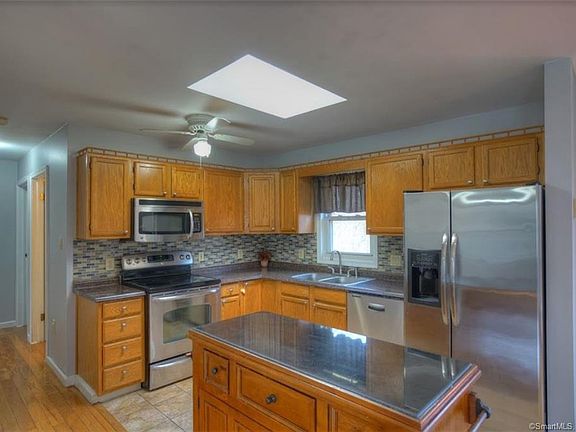 3 bedroom and 1.5 bath home in Groton has 1,414 sf. Living room can be used as a combination dining room. The open kitchen has an island and stainless steel appliances. Both the living room and kitchen have ceiling fans to help cool off in the summer months. Family room, laundry room, and a full bath are located in the full basement with walk-out. Home has a back deck, attached garage, shed, and Thermopane windows. Close to Pfizer and Electric Boat!