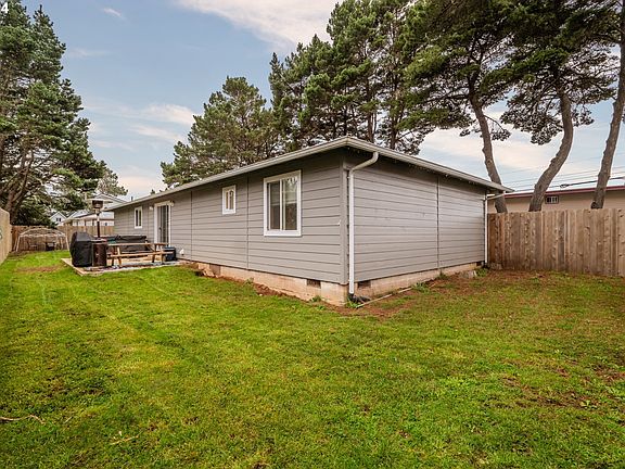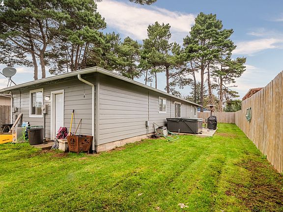 Welcome to the perfect blend of convenient and comfortable living in Bandon! This charming single-story home boasts 3 bedrooms and 2 bathrooms, plus a laundry room where the modern updates meet classic charm. Step inside to find a fully updated interior with newer vinyl plank flooring, kitchen cabinets, granite countertops, and stainless steel appliances that elevate both style and functionality. The open living, dining, and kitchen are perfect for easy entertaining. This home boasts not only aesthetic upgrades but also practical enhancements. A newer roof and hardiplank siding provide peace of mind, while updated electrical systems and a new hot water heater ensure efficiency and safety. The addition of gutters with leaf guards makes maintenance a breeze, allowing you to enjoy the property without worry. Step outside through the sliding glass doors to discover a fully fenced yard, offering both privacy and security. The hot tub provides a perfect spot to unwind after a long day, and the new concrete patio and driveway add a touch of modernity to the home and plenty of parking. Schedule your viewing today!