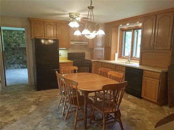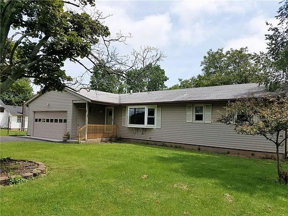 A ranch in the Hilton School District with vinyl siding, a fully fenced yard, newer furnace and a/c, newer H2O heater, 2 car garage, thermoane windows. Gorgeous updated kitchen with oak cabinets,custom sandstone countertops w/undermount sink, solid maple butcherblock, new ceramic flooring & under cabinet lighting. The rest of the home needs some TLC. rooms need paint, carpeting is aged (but hardwoods underneath!), w/b fireplace does not work. 3 generous bedrooms- 1 currently used as 1st flr laundry, a formal living room w/bay window AND a family room w/ stone fireplace (could be a sweet 4th bdrm!) A screened in porch off the back allows you to watch the birds & over look the yard w/ apple & pear trees and lilac bushes.