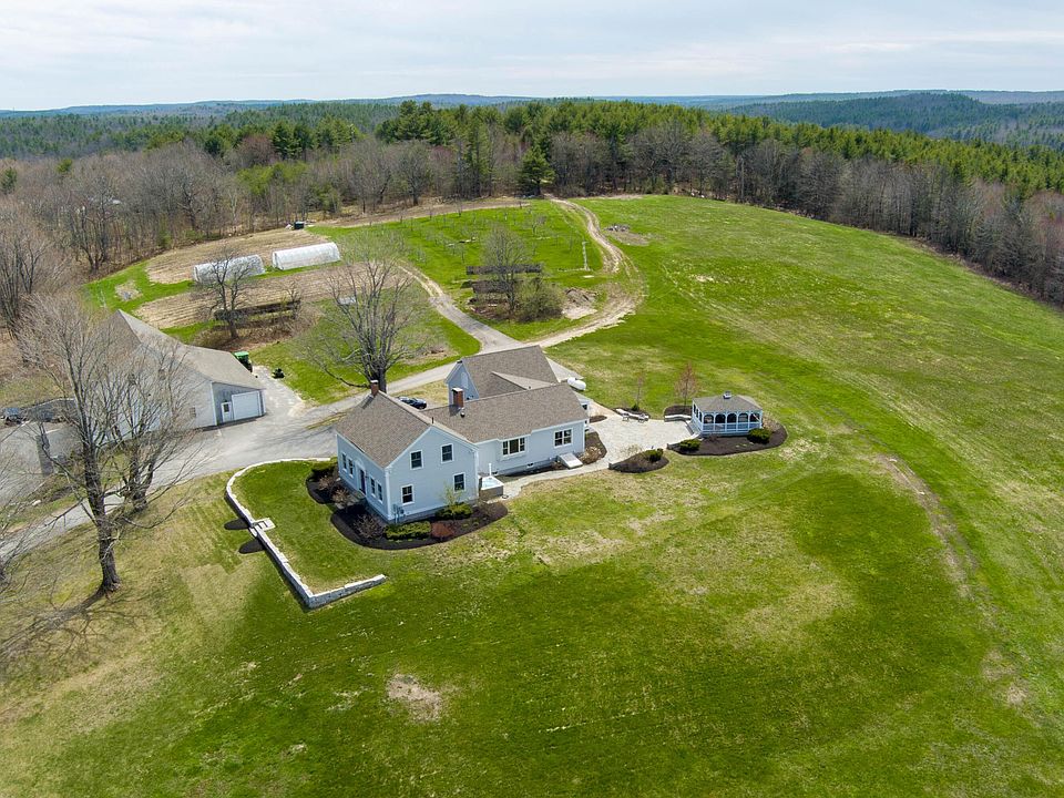 Welcome to Mulberry Farms, an iconic Maine farm producing some of the finest crops in New England. The 235+/- acre property hosts numerous gently sloped high-yielding fields interspersed with areas of mixed forest. The farmhouse was impeccably rebuilt in 2015, providing the finest amenities available on the inside, while maintaining a traditional exterior blending into the landscape. The first floor includes a chef's kitchen with Thermador appliances, a dining area and sweeping views over a large field to the north. Also located on the first floor is a living room with a wood burning fireplace, den with gas fireplace, first floor bedroom with direct access to a full bathroom, a spacious home office, half bathroom and laundry. The second floor features two large bathrooms and a full bathroom. The unfinished lower level features high ceilings with enough area for a home gym, plus a dedicated wine room. The large barn's foundation has been reconstructed and sured up. The first level features a large open area, a separate area for cows and a third area added on to store equipment. The lower level of the barn has two cold storage containers. Access to Notched Pond with a 25' right of way to the water. Potential to build 1,200 square foot cabin on land overlooking Notched Pond. and an additional building envelope on the opposite side of the apple orchard. An intriguing commercial project for an enterprising buyer, or a splendid lifestyle opportunity for the avid hobbyist.