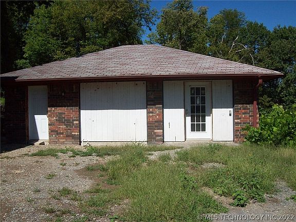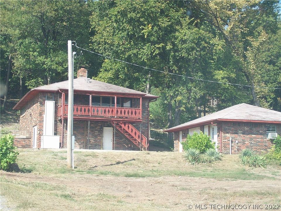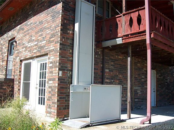 Approx 7 acres. Brick home needs interior finished, new wiring, new flooring in living area up. Elevator on exterior for up access if needed. 3 bed, 2 bath, basement, detached garage plus storage, large barn. Lake waterfront