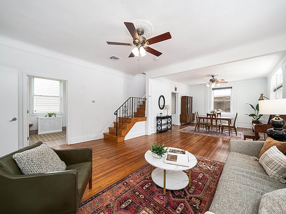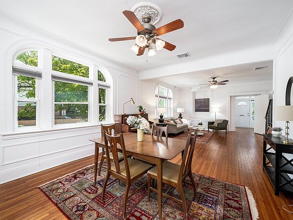 Welcome to this enchanting, single-family brick home situated on an oversized corner lot, complete with a separate two-car garage. This unique home is loaded with original details. As you step through the front door you're greeted by a beautiful, bright and airy enclosed porch that leads to an expansive living and dining room bathed in natural light from oversized windows offering eastern and southern exposures. The main floor features a convenient full bathroom and the kitchen opens out to a large garden perfect for outdoor entertaining and gardening enthusiasts. Upstairs you will find 4 bedrooms & another full bathroom. Additionally, a full basement provides ample storage. Soaring ceilings, original moldings, beautiful hardwood floors throughout and central a/c. Located on the Western Slope in the highly sought area of Jersey City Heights, this truly unique home is a rare find. Close to shops, parks, restaurants and all forms of transportation.