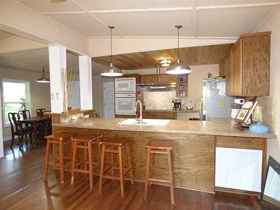 "PRICE FIRM" Renovated 4/2 Hmw\HUGE COVERED PORCH on 2 gentle acres. NEW metal roof; HVAC & ductwork; insulated windows; 6 floor insulation; cement foundation boards & CPVC pipes. SPA MASTER BATH, Mudroom/laundry. Real wood floors; 8 ft+ ceilings, 2 XLG outbuildings. Private Artesian well or City water line all the way to the house. Circular drive w/level paved road frontage. Fruit trees & hardwoods. Open barn has an extra high ceiling & is terrific for parking 2 cars or a fishing boat, ATV s & other toys! Plus, 1000 SF building, with workshop and electricity w/new metal roof and subfloor in 2011. Adorable chicken coop out back--with it s new roof--provides home for your feathered friends/use it as a gardening shed.