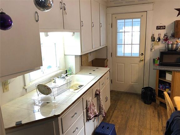This 2 bedroom 1 bathroom home features a nice back yard and a garage with shed for plenty of storage. There is an enclosed farmers porch spanning the length of the home and most of the flooring is the original hardwood. This home would be an ideal fixer upper or investment property, Also great for someone looking to owner occupy and gain some sweat equity. The furnace was replaced in 2007 and the roof shingles in 2006. Short sale subject to lien holder approval.