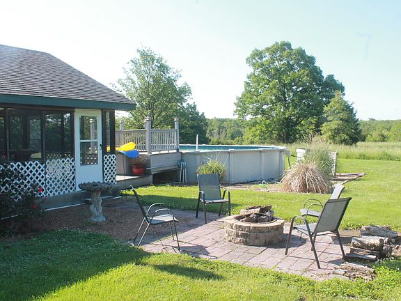 What a beautiful setting! Home sits back off road in a secluded setting with long drive way lined with trees. Home is 3 bedroom 2.5 bath, has been very well kept and is updated. The home has ground source heating and air. The kitchen has large island and concrete counter tops and stainless steel appliances. The master bedroom features a large walk in shower and large walk in closet. If you like out door entertaining this home has a wonderful set up for you and your family. Outside there is an 8,000 gallon above ground swimming pool with deck, a screened in porch and fire pit area. The front of the home has a covered front porch for cool summer nights. We didn't forget Dad in all this! There is a 30x48 shop with drive through door, concrete floor, and an attached 13x48 lean to. There are 2 ponds on the property and a creek. The property is partially fenced but has not been maintained. The property is 2/3 wooded. This home is 15 minutes from Buffalo, 5 minutes from Urbana and is in the Skyline School District.