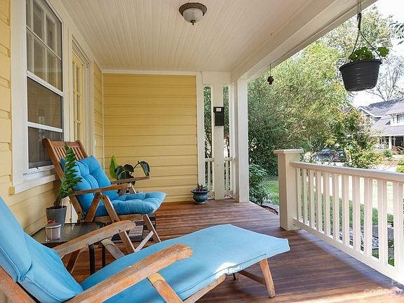 Classic Richard Sharp Smith design in beautiful Montford. Short walk to downtown Asheville, Montford Avenue restaurants, local schools, and Montford Park. This cozy, historic home with beautiful hardwood floors boasts a large living room and dining room (great for entertaining), a recently updated kitchen with ceramic tile floor, plus two spacious bedrooms upstairs, one of which is the primary with an attached office and a good closet. Charming, classic clawfoot tub in upstairs bathroom; shower in full bath on main level. Many updates include two new HVAC systems, 200-amp electric panel, and fresh exterior paint. Lovely sunroom at the back is perfect for a morning cup of coffee and indoor gardening, and the inviting front porch is great for relaxing, too. Enjoy a spacious, level back yard, wonderful for pets or play! Shared driveway with two off-street parking spots in the rear. Must see — won't last long!