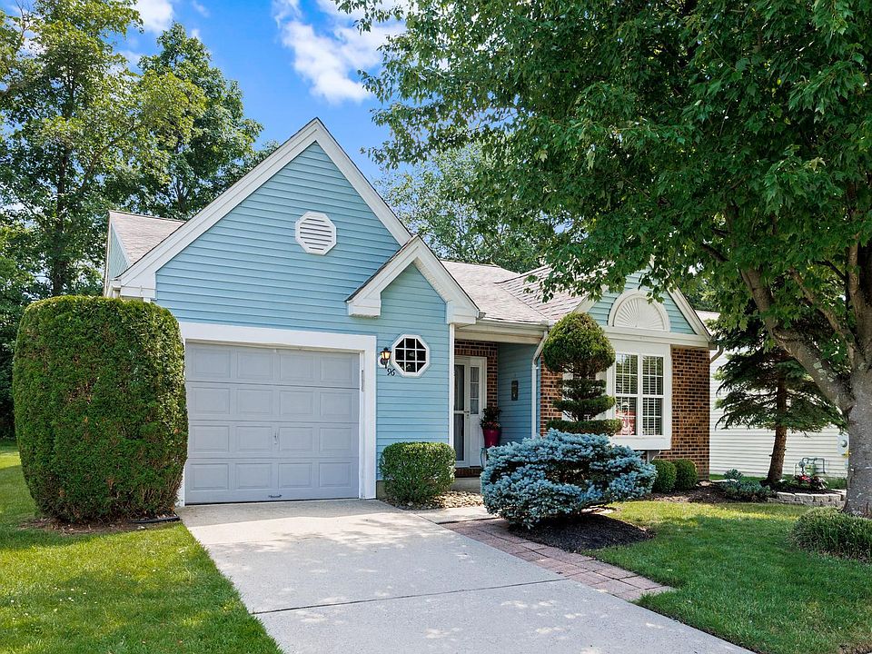 Welcome to 96 Peppergrass Drive and be ready to enjoy an easier lifestyle all in the popular, much loved 55+ community of Holiday Village East! If low maintenance is what you're after, this is the perfect home for you! Adorable curb appeal begins with lovely garden beds and leads to a covered front porch area. Step inside to a spacious and open interior with neutral tones throughout. Gorgeous hardwood floors greet you in a large foyer and flow beautifully into the kitchen and casual dining area. A front bay window provides charm and plenty of natural light as you cook or stop to enjoy a cup of coffee. Beautiful maple cabinetry, stainless steel appliances and plenty of cabinet & storage space make this kitchen functional & stylish. The combination living and dining room offers the space you need for entertaining, and features 2 large windows for plenty of natural light and a gas fireplace with marble surround. Continue on to a lovely family room, with 2 sets of custom built-ins, and a slider to your very own large fenced patio area with retractable awning, perfect for pets, BBQ's or enjoying quiet views of the pretty greenery. The primary suite is spacious, and offers a large walk-in closet, separate handy area with a vanity and mirror, plus the primary bath with step in shower. The 2nd bedroom is also a fabulous size, and the main hall bath has been nicely refreshed. The laundry room and access to the 1 car garage complete this main level. The Haverhill II model is popular for the 2nd floor Loft area, which can be used as a guest suite, den, so many possibilities! Holiday Village East features an active community, with an inground pool, clubhouse that hosts a variety of activities, tennis, bocce Ball, shuffleboard courts & more. The community is well maintained and charming. So, ditch the lawn mower & snow shovel & make your appointment today!