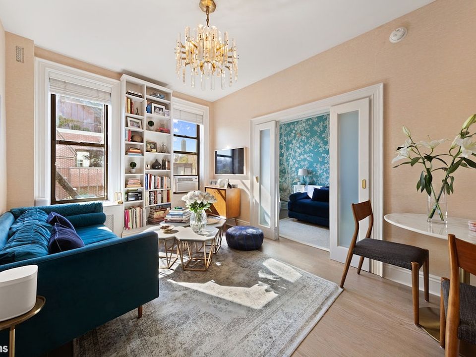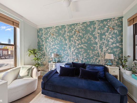Charming renovated sun-soaked oasis in the heart of the West Village. This lovely two bedroom (one full sized & one queen sized bed fit), one bathroom pre-war cooperative apartment on the 5th floor, features amazing open city views with three exposures in a well-maintained boutique elevator building. The beautifully renovated windowed open kitchen has custom cabinetry, marble backsplash and high-end stainless steel appliances. The renovated, windowed bathroom has ample storage with beautiful marble & tile and is well-situated between the two bedrooms. With high ceilings, white oak hardwood floors & built-ins, the light-filled living room faces south through oversized windows with views downtown all the way to the Financial District. The living room opens into the north & south-facing 2nd bedroom through french doors which additionally works nicely as a den or office. There is a beautiful landscaped roof deck with spectacular 360-degree Manhattan views, a laundry room, recently renovated hallways, and bike storage and storage units available for an extra fee. 96 Perry Street is perfectly-located in one of Manhattans most desirable and chic neighborhoods near shopping, restaurants, the Hudson River Park and all transportation. Available unfurnished. Sorry, pets are not allowed. This is a non-smoking apartment.