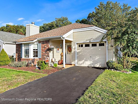 Welcome to 96 Pine Oak, located in desirable Pheasant Run, an active 55+ adult community. The Devon model has an open and airy floor plan that features 2 generously sized bedrooms and 2 full bathrooms. This lovely home has been freshly painted and has new flooring. The eat-in- kitchen features new appliances with updated quartz countertops and backsplash. The kitchen has tons of natural light and a sliding door, which leads to a side patio. The primary bedroom suite has a full bath, walk-in closet and a sliding door leading to covered back patio. In the back of the home, enjoy the sunroom where you can read a book or listen to the birds. The home backs up to the woods for additional privacy. The community offers a pool, tennis courts, bocce courts and shuffleboard. Conveniently located to shops, beaches and more. This move-in ready home won't last!