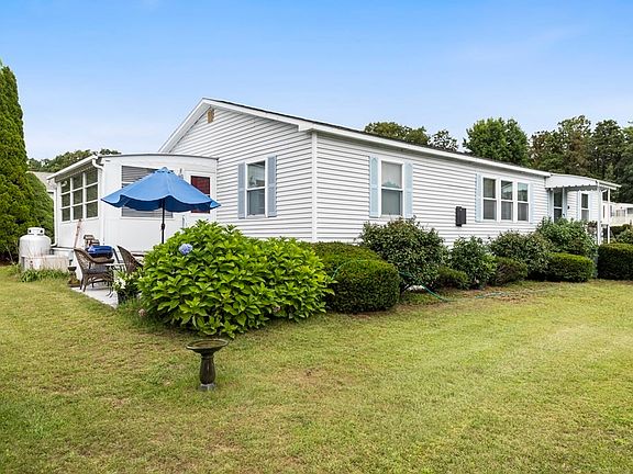 Welcome to Pinehurst Village 55+ Community in Plymouth! This double-wide, open-concept spacious home is exactly what you've been waiting for. This home features 3 spacious carpeted bedrooms and 2 full bathrooms! The primary bedroom has a spacious closet with a full bath that has a walk-in shower. The main living area features vinyl flooring throughout with a cozy propane gas fireplace. As you head towards the kitchen you'll find plenty of cabinet space. Washer and dryer hook up and a bright 4 seasons room with built-in cabinets and access to the backyard. This home is equipped with central air and propane heat. As you step outside you'll find a spacious yard and a large shed perfect for storage. Pinehurst Village also offers a great clubhouse with an inground pool for its residents.