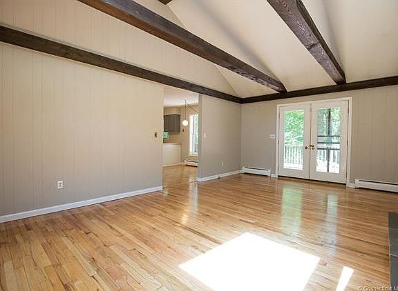 Great 4 bedroom, 2 and 1/2 bath colonial located in a private neighborhood setting on 1.43 acres next to walking trails. This home offers hardwood floors on first and second level. Bathrooms have been remodeled with new vanities, granite counter tops, faucets, and toilets. Master bath has new tile floor, tile shower. All rooms have been freshly painted in today's colors. The spacious family room has vaulted ceilings with wood beams. Family room features a wood burning fireplace and french doors leading to a 300 sq. ft. 4 yr old deck. Perfect for barbecuing and summer fun. Kitchen has a pantry, breakfast bar, plenty of cabinet space and eat-in space. Formal dining room for holiday gatherings. Expansive formal living room with with gas stove provides plenty of space. Master bedroom with remodeled bath. 1st floor laundry provides convenience. Walk up attic proivides additional storage. Close to Connecticut beaches and shopping. All you have to do is move in and start enjoying!