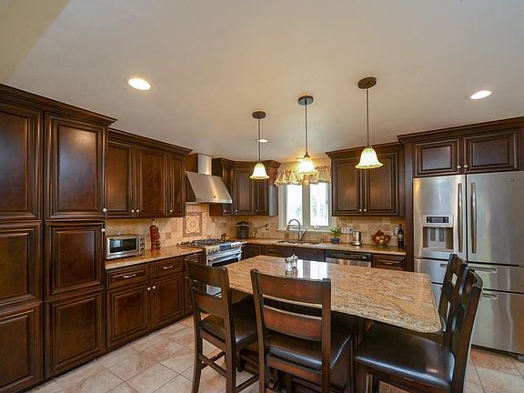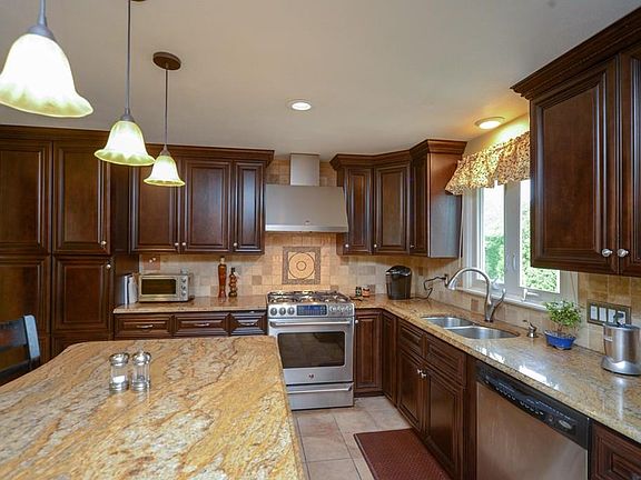 Beautiful home with loads of updates. Newer kitchen with large island, granite counter tops and SS appliances. Dining room opens to deck overlooking beautifully landscaped fenced yard with mature, lush plantings is a private oasis with ig pool, fire pit with custom patio stones, outside bar and island with built in barbecue. Hdwd throughout first floor and open floor plan. Four bedrms and two full baths up and a master bedrm suite just finished on lover level boasts an amazing spa bathrm with double sinks, custom cabinetry and amazing shower. Since this was recently finished, the closet has not been started. This would require breaking through to the storage room which would create a huge walk in closet. Spacious family room with fireplace, with walk out slider to backyard, large bar with stools, fridge and sink with built in shelving for entertaining. An office/library with custom built in bookcases and beamed ceiling could also be home office. Half bath and loads closets and storage