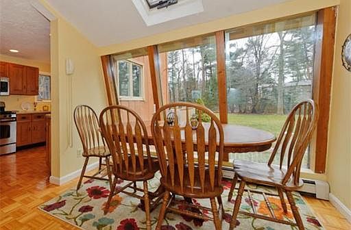 RETREAT SETTING WITH OVER 3466 SQ. FT. OF LIVING SPACE. LARGE MANICURED LEVEL YARD. FRESHLY PAINTED AND MANY OTHER UPDATES INCLUDING 2012 STAINLESS KITCHEN APPLIANCES. THIS SUN DRENCHED, WELL MAINTAINED HOME FEATURES A LARGE FAMILY ROOM W/ WOOD STOVE, FIREPLACE AND SLIDER TO LOVELY YARD, AS WELL AS THREE DECKS. TWO MASTER SUITES FIRST AND SECOND FLOOR. GREAT BASEMENT WITH AMPLE STORAGE. SUN ROOM EXUDES WARMTH AND COMFORT. EASY ACCESS TO ROUTE 3.
