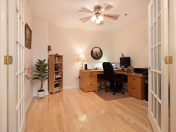 Welcome to this beautifully designed two-bedroom, two-bathroom one-owner condo with a versatile den, perfectly blending comfort and functionality! As you enter, a spacious foyer with a large coat closet and storage room sets the tone for the thoughtful layout. Clearly meticulously maintained, the open-concept main living area is ideal for both everyday living and entertaining, and subtly separates the two bedrooms for privacy. The kitchen provides plenty of cabinetry and counter space, seamlessly connecting to the dining area and a bright living room that features dimmable pot lights for a calming ambience. From here, step into the inviting solarium, where large windows frame stunning cityscape views. The primary bedroom, privately located behind French doors on one side of the unit, features a walk-in closet, a four-piece ensuite, and direct access to the patioperfect for relaxing mornings or evening sunsets. On the opposite side, youll find the secondary bedroom, next to a well-appointed four-piece main bath, as well as a laundry closet, and a beautiful den with French doors that allow the space to expand as needed. This condo comes with an assigned underground parking space and an additional storage unit. Residents also enjoy a wealth of building amenities, including a fitness centre conveniently located on the same floor, a guest suite, meeting room, and library as well as a grand tiled lobby and ample outside parking for visitors. Centrally located with easy access to highways and close to all amenities, this condo offers the ideal combination of convenience, style, and comfort.