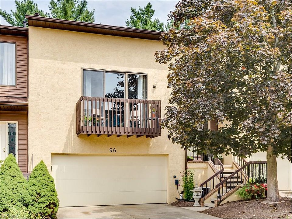 Enjoy a carefree lifestyle in this fabulous 2/3-bedroom 3 full bath condo! Decorated in subtle grey tones and offering newer carpeting throughout, the open floorplan includes a living room that is flooded in natural sunlight and boasts soaring vaulted ceilings, skylights, oversized windows and a slider that opens to a balcony. The kitchen offers ample cabinet and counter space, a pantry, breakfast bar, stainless steel appliances and hardwood flooring. A spacious dining room overlooks the charming brick patio. The family room, with French doors and a beautiful bayed window that also offers views of the private back yard could be used as a 3rd bedroom, as it includes a large closet and has access to a full bath. The first floor laundry is definitely a major plus. Moving to the second floor you will find a sizeable loft area, master bedroom with a walk-in closet, large bathroom with double sinks and a garden tub. Another nicely sized bedroom with a large closet completes the second floor. The lower level includes the perfect space for a game room, plus a second area for storage and also offers a 3rd full bath. Located near the Cuyahoga Valley National Parkâs scenic bike and hike trails, 96 Ridge Side Court in beautiful Munroe Falls, Ohio, is the perfect choice for your new home. Donât miss out. Call for your private showing today.