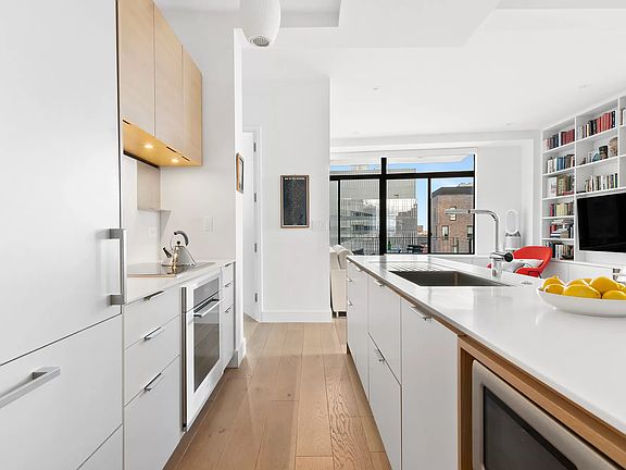Location, light, thoughtful design - this meticulously renovated two bedroom condo checks it all! The current owners went above and beyond transforming this apartment into a true dream home. As you enter through the hallway of closets, you see a pristine open living room basking in the sun with two exposures and open Brooklyn views. Bespoke Henrybuilt kitchen brings new level of quality and functionality to a day-to-day life and its high-tech design is complemented by the top of the line appliances - Wolf induction cooktop, Wolf convection oven, Miele dishwasher and Subzero refrigerator. Gorgeous dining banquette and wide plank PID flooring throughout add another level of comfort and warmth to this residence. Spacious and welcoming living room with custom built-in bookshelves and storage, oversized windows and a private terrace will probably be your favorite place to unwind after a long day, while enjoying the changing colors of the sky from the comfort of your sofa or from a private terrace. The grand master suite offers proportions (11' x 18'), open views and a fully renovated en-suite bathroom with abundant vanity space, built-in niche, Ann Sachs tiles, Grohe chrome fixtures and a linen closet. The second bedroom is big enough to fit a queen size bed and the guest bathroom features a bath tub with mosaic and marble tile finishes. Additional upgrades include Lutron lighting control, Nest climate controls, Kwikset keyless smart entry and brand-new Miele washer/dryer. Live in the center of it all at 96 Rockwell Place - a boutique elevator building in the heart of Fort Greene and BAM cultural district with a gym, bike storage, a virtual doorman (Butterfly system) and a full-time super. Only steps away from Fort Greene Park, Boerum Hill, Park Slope, Downtown Brooklyn, Prospect Heights with an easy access to everything from small local boutique stores to highly rated restaurants and venues (Loreto, Miss Ada, Evelina, Roman's, Olea, Rucola, Public Records just to name a few). Whole Foods, Apple store, & the Coffee Project are all within one block radius and Chelsea Piers Fitness is a 5 minute walk away. Your transportation options are endless with 9 subway lines (2,3,4,5.N.R,B,D,Q) and LIRR at Atlantic/Barclays station.